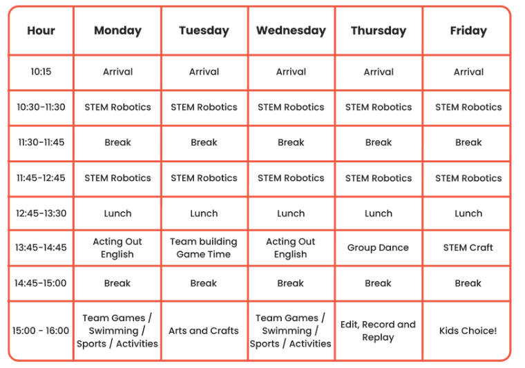 20 hours of English, STEM, Drama, Arts & Crafts, Games & 10 hours of sports and many more in 2 weeks!